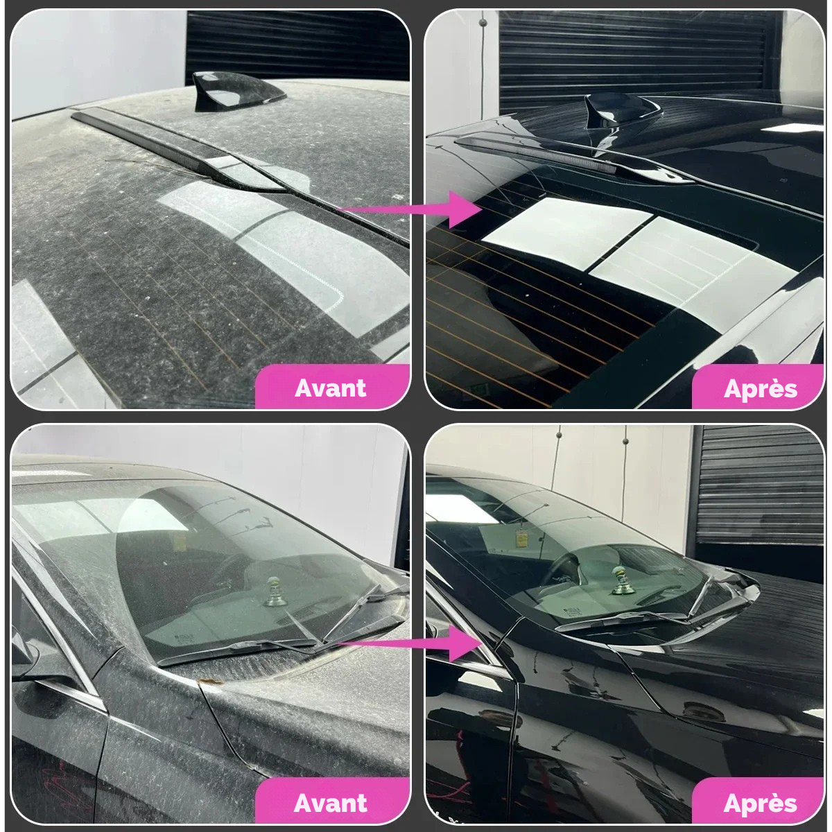 Pulvérisez uniformément le produit dilué sur la surface du véhicule. Après avoir attendu 1 à 2 minutes, utilisez un pistolet à eau haute pression pour rincer l’excès de mousse de bas en haut (tenez le pistolet à eau à 12 à 20 cm de la carrosserie du véhicule).